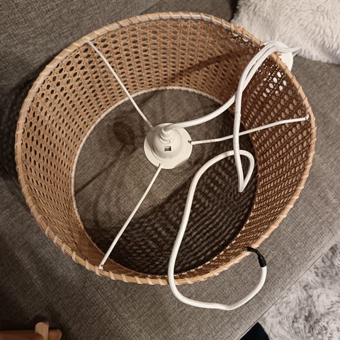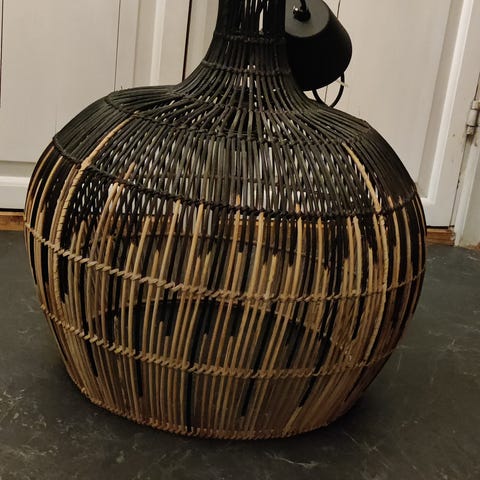 Rottinkinen valaisin. Siisti ja ehjä. Toimii. Mitta on korkeus 32 ja lampun kanssa 39. Varjostinta ei ole.
