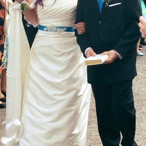 Lovely wedding dress in size 46, because of lacing it will definitely fit a size 44-48 as well.