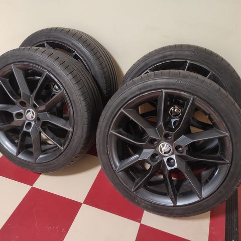 Skoda Octavia alkuperäiset alumiini vanteet, renkaat käyneet vanteilla muttei ole edes käyneet auton alla.