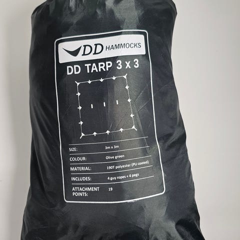 Helsport tarppi itselle ylimääräinen. Ollut noin 2 tuntia käytössä tuulisuojana metsässä, eli lähes käyttämätön. Pakkauspussissa saumat hieman venyneet (kuva).