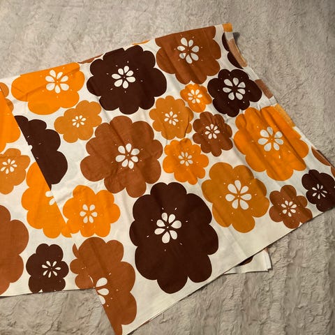 Varaston perukoilta oikein kunnon retro-vanhaa seitkyt tms lukua oleva Aurinko ja Kuu-teemaisia sisustus/seinäkangas.