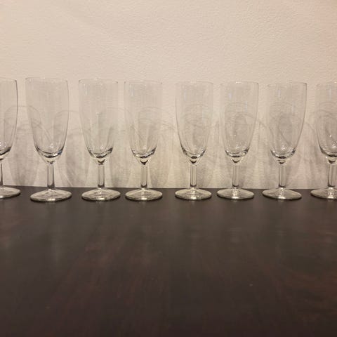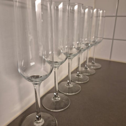 kauniit, sirot skumppalasit 8 kappaletta. ehjät, vähän käytetyt, korkeus n. 22 cm. YHTEISHINTA. VAIN NOUTO. EI POSTITUSTA.