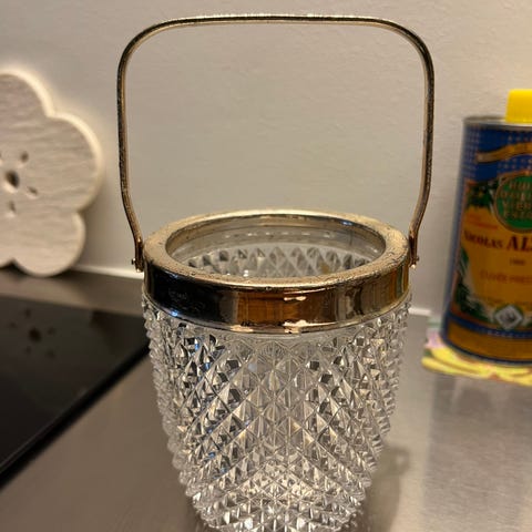 Vihreälasi/messinki. Vintagea 1960-luvulta.