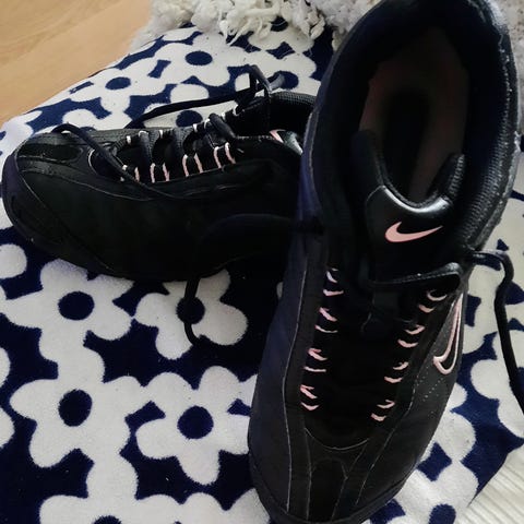 Nike Air Muu urheilukengät koko 39. Värit valkoinen, musta ja punainen. Kengät on valmistettu kestävistä materiaaleista ja soveltuvat monipuoliseen urheilukäyttöön.