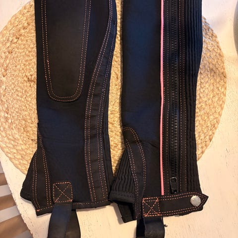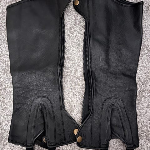 Katu-uskottavat chapsit vielä kovaan käyttöön. Olleet hyvät käytössä. Kiillottuneet pohkeen sisäosista. Toimivat vahvat vetoketjut. Eivätkä ole mistään rikki. Minulle pienet. Pohkeen paksuus paksuimmasta kohdasta saa olla ratsastushousujen kanssa max. 37-(38) cm. Mitat: chapsit nilkan tasolta kun ne on levitetty 29 cm. keskiosa 33 cm yläosa 39 cm. kork.46 cm Toisesta chapsista lähtenyt metallinen merkki pois. Mountain horset. Voi kulkeutua tre-ylöj-pla ja voin postittaa.