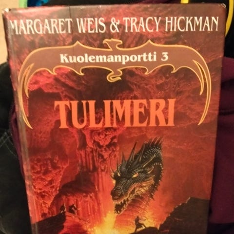 Margaret Weis & Tracy Hickman : Kuolemanportti II : Haltioiden tähti, pokkari, 2. painos. Kansissa hyllykulumaa, kansiaukeamalla divarin hintamerkintä lyijykynällä. Luettu mutta hyvin pidetty.