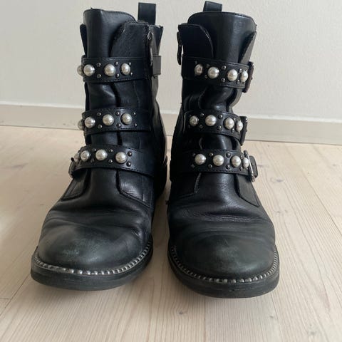 Hopean harmaat sileän sametin pintaiset. Varsi joustaa. Koko 39, käy koolle 38.