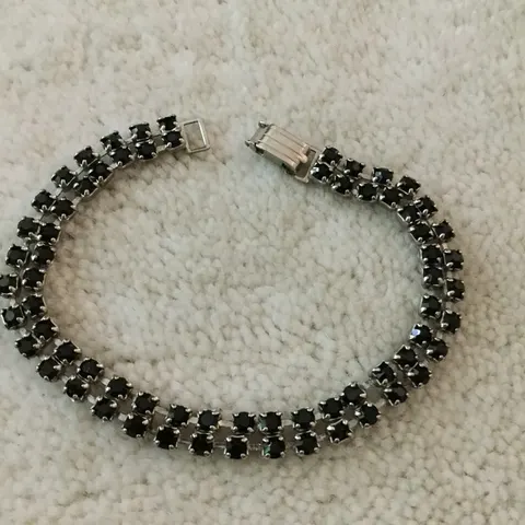 Mustat korvakorut, koristeena iso kimaltava strassi. Mustan helmen halkaisija 1,5 cm. Uudenveroiset.