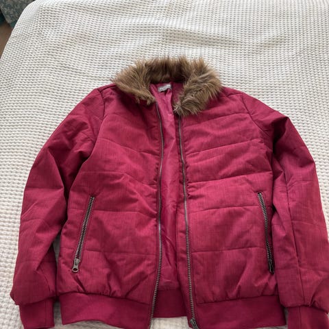 Hieman tyköistuva ja muotoonleikattu, kaunis, kiiltäväpintainen toppatakki. Kultaiset vetoketjut.