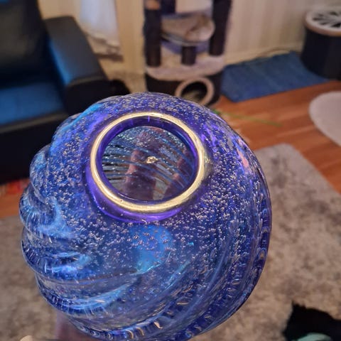 Hieno ja upea värillinen maljakko. Viron tarbeklaas. Korkeus 11.cm. Erinomaisessa kunnossa.