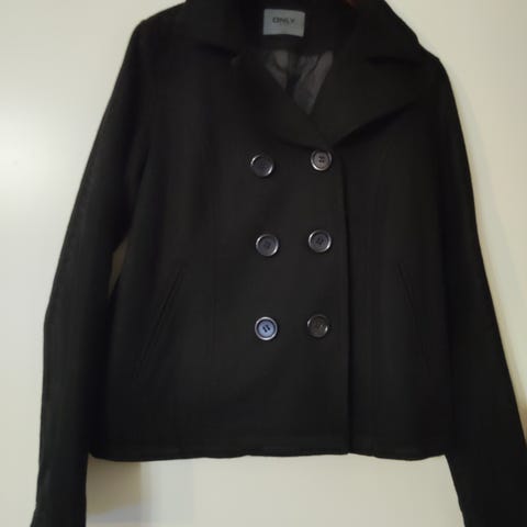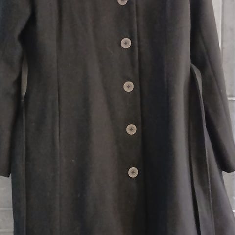 Lyhyt, hyväkuntoinen, Vilan musta kangastakki. Koko L. Takissa ohut vuori ja taskuja
