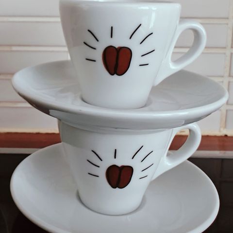 Käyttämättömät Segafredo espressokupit ja lautaset.