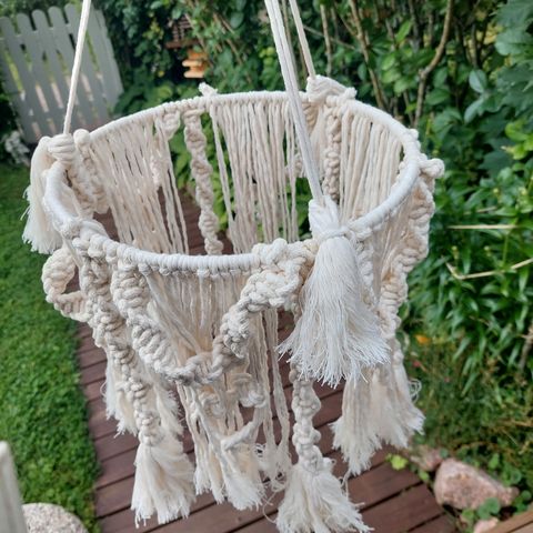 Uusi huolellisesti tehty makrame valoputous. Halkaisija 15cm. Korkeus 230cm. Valot eivät tule mukaan (tuossa kuvassa pattereilla toimiva valonauha). Haku Ryttylästä, myös postitus onnistuu.