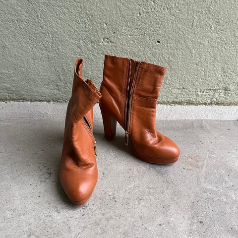 Ruskeat, nahka/kangas niitti nilkkurit, korkea pohja