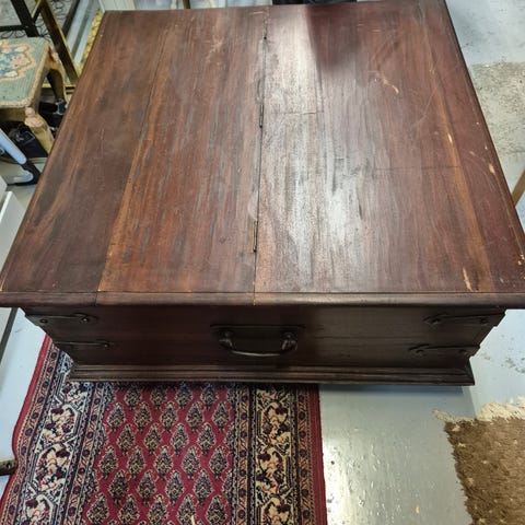 Valkoinen Vilkan 1960 - luvulla valmistama arkkupöytä 80 x 80 cm, korkeus 50 cm.
