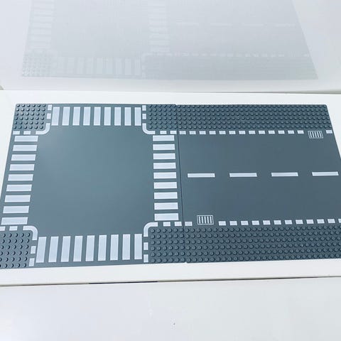 Lego City Tielaattoja. T-risteys ja mutka. Lego myynyt vastaavaa parivaljakkoa settinumerolla: 7281 ja 60236.