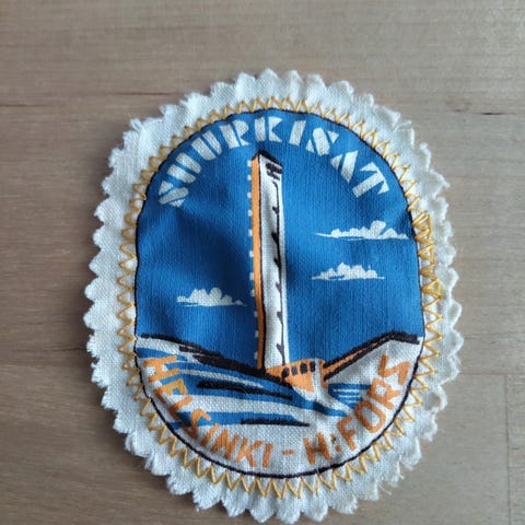 Triumph clubin ja Suomi-Finland-kangasmerkit sekä 4 kpl Suomi Finland -tarraa. Hinta yhteensä.