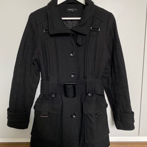 KappAhl villakangastakki. Koko S. Pituus polvien yläpuolelle. Materiaali 36% villa, 58% polyester, 3% acrylic, 3% nylon.