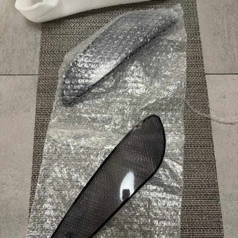 Oikeanpuoleinen jäähdyttimen suoja. Muutama pieni naarmu, muuten ehjä. Näkyy toisessa kuvassa.