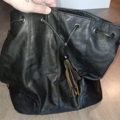 Mokka/nahka olkalaukku mukana tulee vyö jolla saa laukusta myös vyölaukun käyttöön.