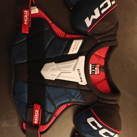 Yhden kauden käytetyt rintapanssari ja kaulasuoja.