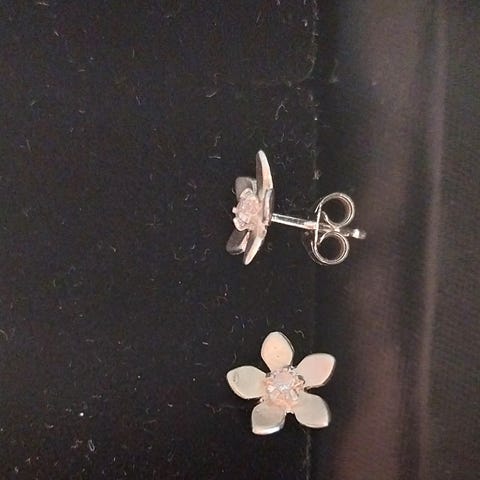Myydään suloiset kukka-korvakorut, hopeaa. Leimat 925 hopeaa sekä tapissa että kannassa. Koristeosan halkaisija 5 mm. Korvakorut ovat uudet, käyttämättömät ja erinomaisessa kunnossa.