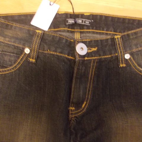 Ryhdikkäät ja tukevaa farkku kangasta, muodikkaat levenevät lahkeet. Sävy tumma.Hp 26 e, SISÄLTÄEN postikulut TAI nouto Tuusula Jokela 20e