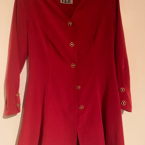 Tazzia Suomessa valmistettu punainen jakku, koko XS mutta sopii nykymitoituksella S/M. Koriste irrotettava. Erittäin siisti kunto, laadukas.