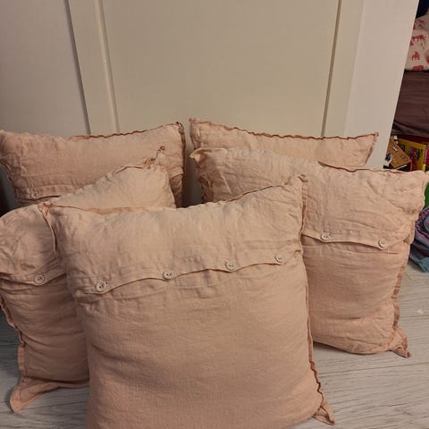 Uudenveroisessa kunnossa olevat sinisävyiset sisustustyynyt/tyynyliinat (mukaan ei tule tyynyjä). Mitta 50x50m. Hinta on molemmista yhteensä.