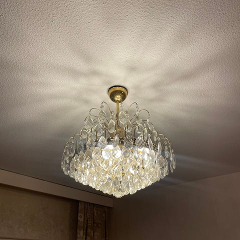 10 lampun ja 65cm halkaisijaltaan oleva kristallikruunu kanta E14 vaidettavissa vaikka värillisiin lamppuihin tai ledeihin.