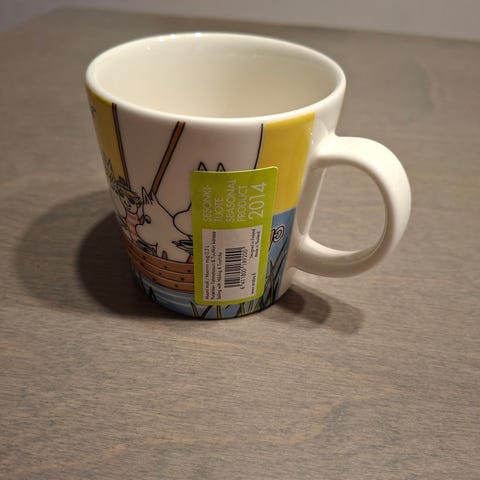 Tarralliset Muumimukit vanhempaa tuotantoa, erinomaisessa kunnossa, säilytetty vitriinissä.