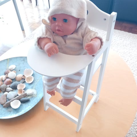 Kaksi puista nuken tuolia, korkeus 15 cm, ehjiä, voi maalata mieleisen värisiksi, yht.15e