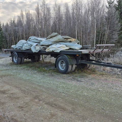 Tästä pienellä näpertelyllä kärry monipuolisiin käyttötarpeisiin. Esim. paalikärry