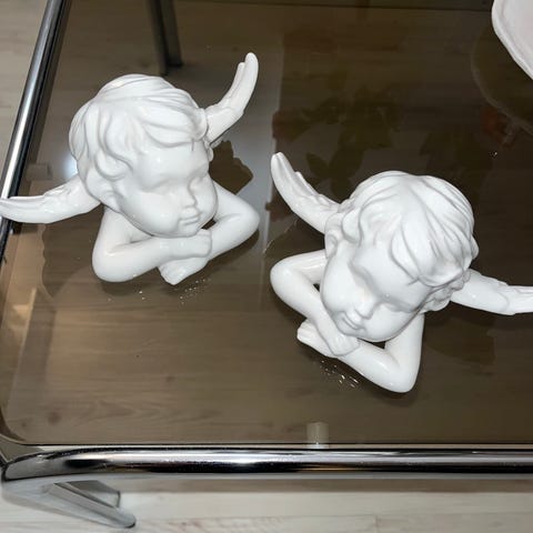 Noin 16 cm korkeat figuurit / patsaat. Kaksi yhteensä 8 €. Toimitus Lpr kesk. Postitse toridiili. Postitus ostajan vastuulla, toki hyvin pakattuna.