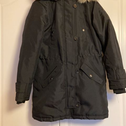 Todella siistikuntoinen, juuri pesty musta talvitakki koossa M. Hupussa irroitettava karva.