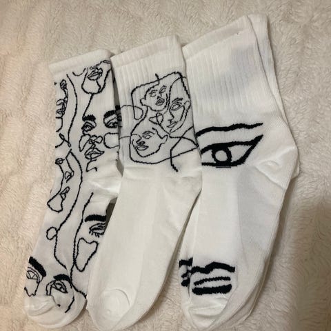 Tosi kauniit mustat muotisukat. Päälliosa läpinäkyvä. Varsi kimaltelevaa. Hinta yht. 10e.