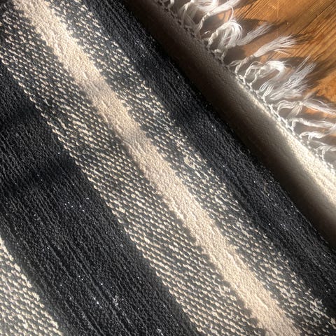 Raidallinen poppanaliina / kaitaliina (36cm x 180cm), käsin kanganpuilla kudottu