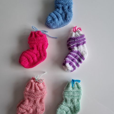 Pieniä villasukkia nukelle tai vastasyntyneelle