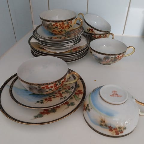 Kahvi kuppi 4 kpl + lautaset Japani japanilainen ohut posliini