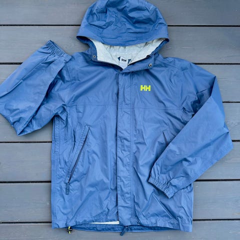 Myydään kerran käytetty ja pieneksi todettu Helly Hansen nuorten sadetakki. Lapussa koko 176cm/16v.