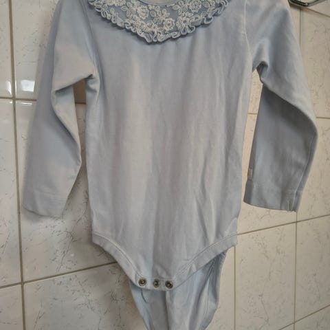 Tahroja rinnassa ja toisessa hihassa, yleisilmeeltään kuitenkin tosi siisti! Tahrat näkyy vain syynämällä. Meillä käytetty 1v juhlissa. Tästä seuraavalle hieno juhlabody huolettomaan käyttöön :)