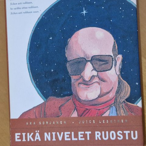 Juice Leskinen : Eikä nivelet ruostu : Juice Leskinen 50 v tekijöitä Juice Lekinen ja Axa Sorjonen kustantaja Tammi 2000 kovakantinen julkaisu kansipapereissa kulunesuutta