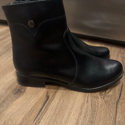 Grip+ pohja, kauluksessa mokkasomiste ja kuminauhakiila, korko 3,5cm, varren pituus takaa keskeltä n. 15,5cm. Ovh 120e.