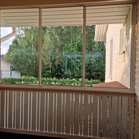 Karkaistulasi 8mm, 146cm*95,5cm, ollut saunaikkunana