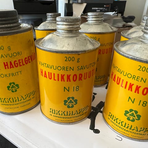 Koristeeksi tai keräilyyn hyväkuntoinen tyhjä peltinen Vihtavuori ruutipurkki -70-80-luku.