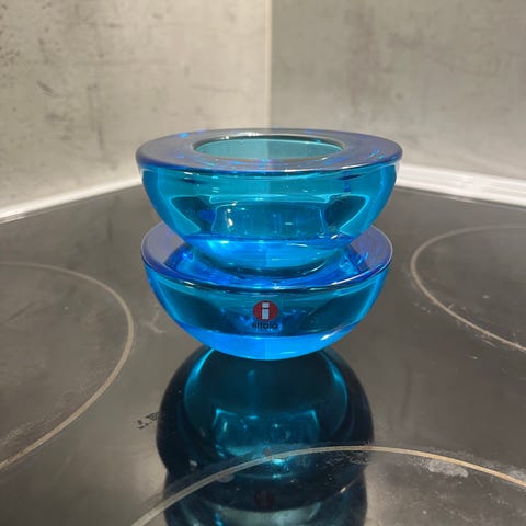 Iittalan Julia-kynttilänjalka, design Valto Kokko. Harvemmin tarjolla. Keskimmäisessä kuvassa näkyy pienen pieni kirpun purema pohjassa, ei näy käytössä.