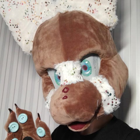 Fursuit kemono 3D-tulostettu pohjapää silmillä.
