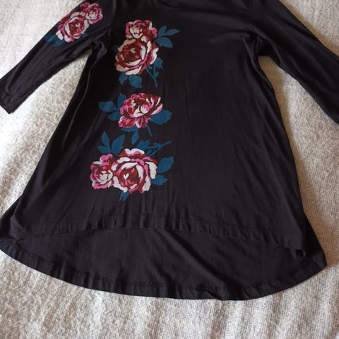 Kainalo-kainalo noin 50 cm, olka-helma 63 cm. Hihan pituus olalta 51 cm.