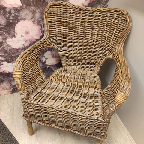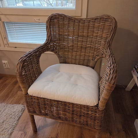 Erittäin hyväkuntoinen Ikean Byholma rottinkituoli. Mukana valkoinen istuintyyny.