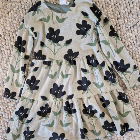 Mainelakeus kankaasta mekko. 128-134 cm. Pesty mutta ei käytetty.